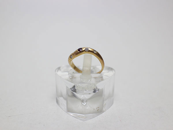 K18指輪 買取年月日 : 令和8年1月22日 ルビー : 0.22ct 買取重量 : 2.5g 買取価格 : 46,800円