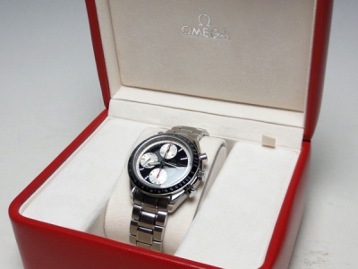 こちらのオメガスピードマスターは、デイト機能搭載のスピードマスターの人気モデルです。ブラックの文字盤に、赤色の針が特徴的なデザインとなっております。 このお品物は、8万円で買い取らせて頂きました。